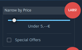 With this slider you can adjust what the threshold should be. If you ever wanted to find games below a specific price, then this is the setting. If you check the Special Offers, then only games that have currently a price cut will be presented.